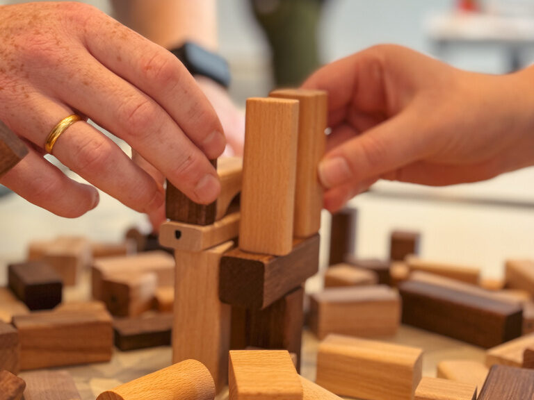 Læg det første grundlag for jeres fælles domino-kunstværk. Tålmodighed og rolige hænder er nøgleord, helt til det sidste fald. Byg kreative og effektive domino-enheder, som sammen danner en stor team-oplevelse.