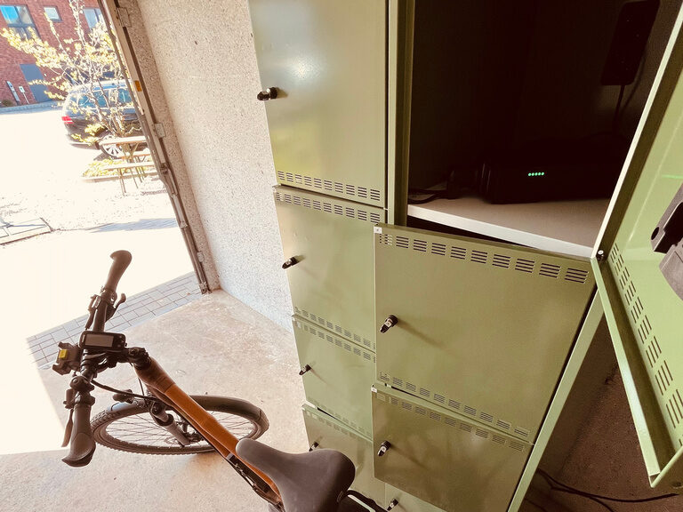 Für alle Gäste, die mit dem E-Bike anreisen, haben wir auch eine Neuerung geschaffen. Unsere verschließbaren Fahrrad-Spinde haben jetzt alle einen Stromanschluss, sodass der Rad-Akku problemlos und sicher in der Fahrradgarage für die nächste Tour geladen werden kann.
